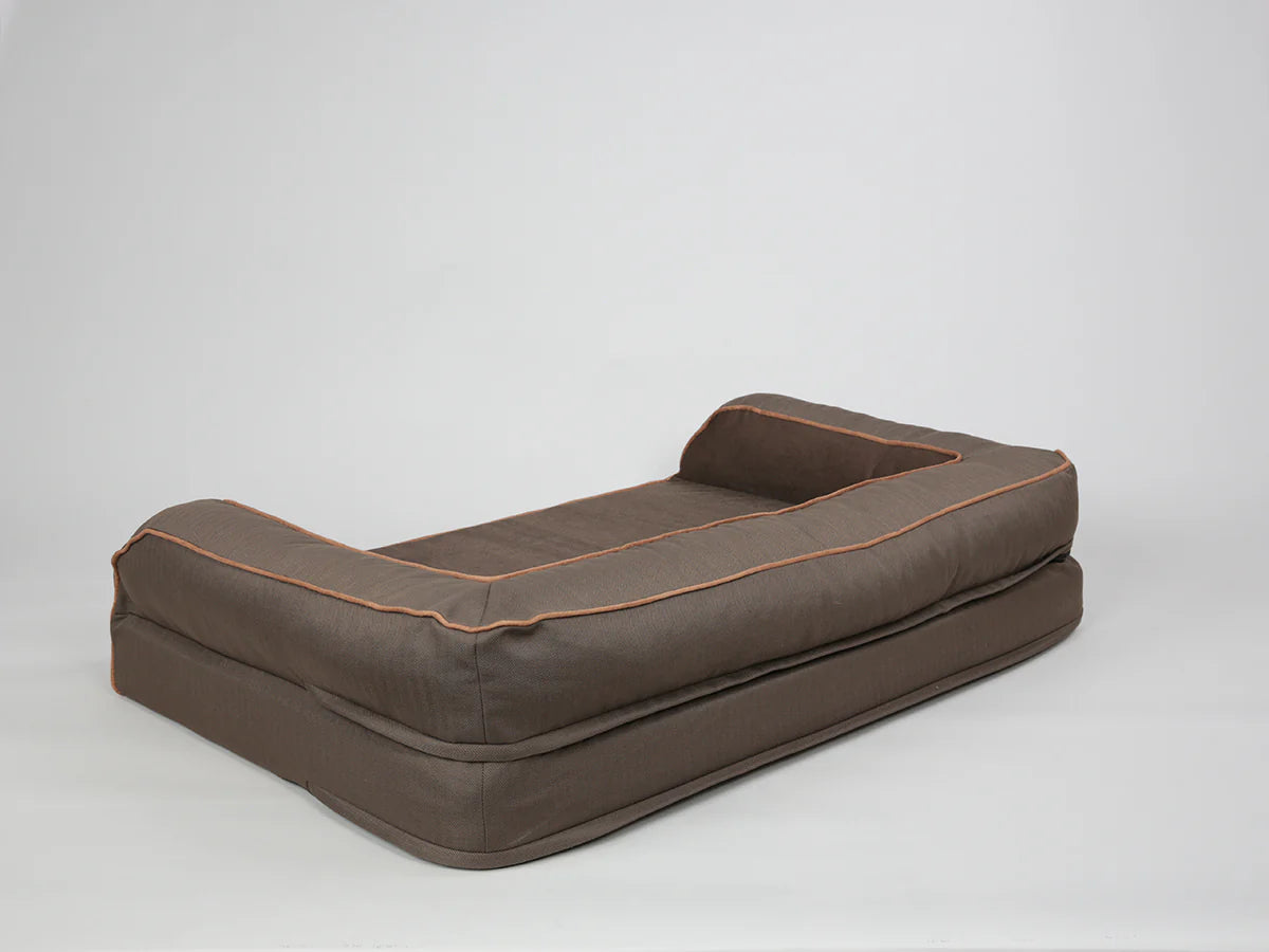 This sofa bed is available with our orthopaedic, blended memory foam particles mattress, for dogs that like to settle into their bed. Alternatively, our memory topper mattress offers a flat sleeping surface, with firmer support.
