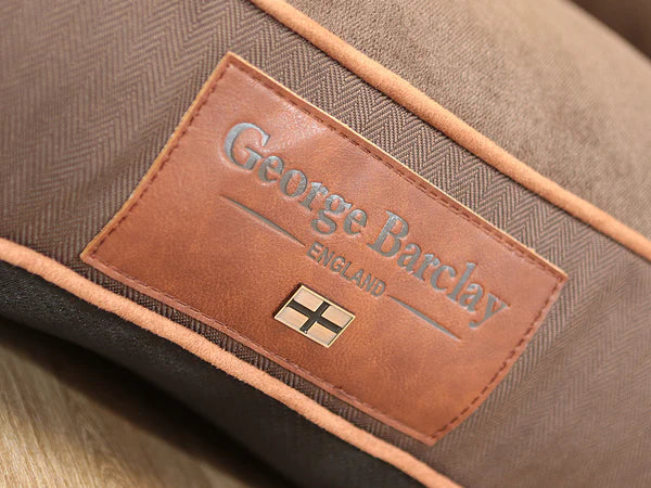 The George Barclay Savile, sofa bed, is a contemporary styled dog bed, inspired by iconic fashion elements. A soft woven chenille fabric covers the sofa's sleep area, this is complimented by a subtle woven herringbone material covering the beds exterior. The bed is finished with faux suede piping, with an embossed faux leather centre patch, which includes an English flag emblem to complete the beds signature styling. The 3-sided design forms a cosy environment for your dog, whilst retaining easy access.