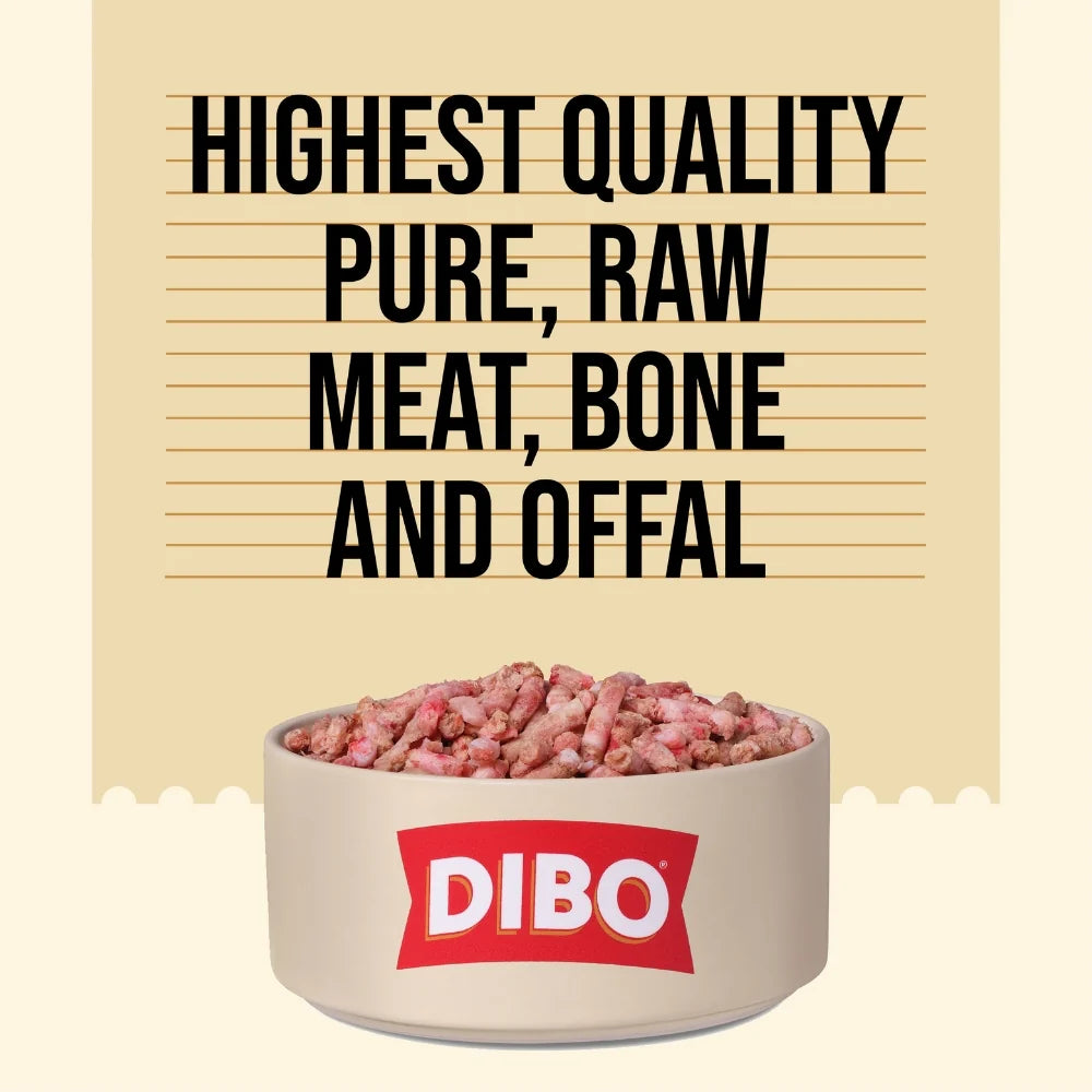 The frozen mince is quicker to defrost than large raw cuts, easy to portion, and simple to serve as a complementary meal. Its tasty bite-sized pieces also make it perfect for smaller dogs to enjoy.