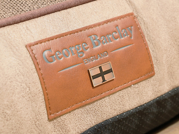The George Barclay Burley dog mattress has been produced using the finest quality upholstery fabric. The bed utilises a soft woven fabric topper, paired with contrasting faux leather sidewall. The mattress is finished with faux suede piping, with an embossed faux leather centre patch, which includes an English flag emblem, to complete the beds signature styling.